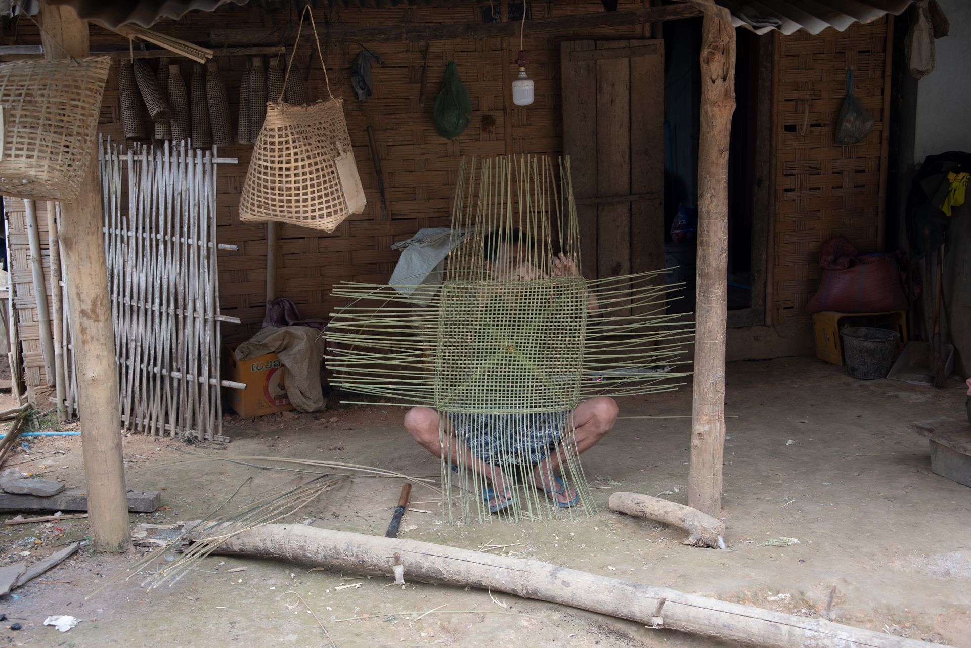 Bamboo basket making in Nong Khiaw