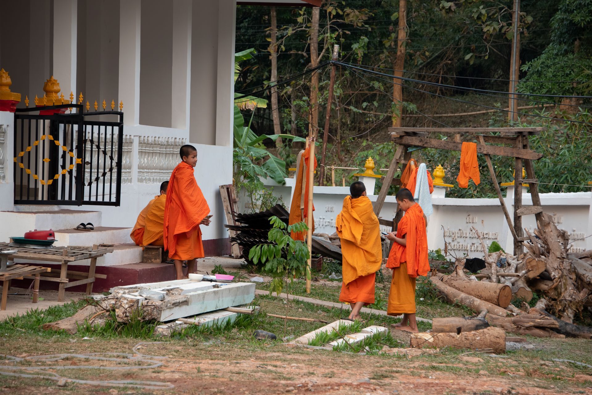 ButtonYoung monks at the Vat Okadsaiyaram Buddhist temple in Muang Ngoy.
